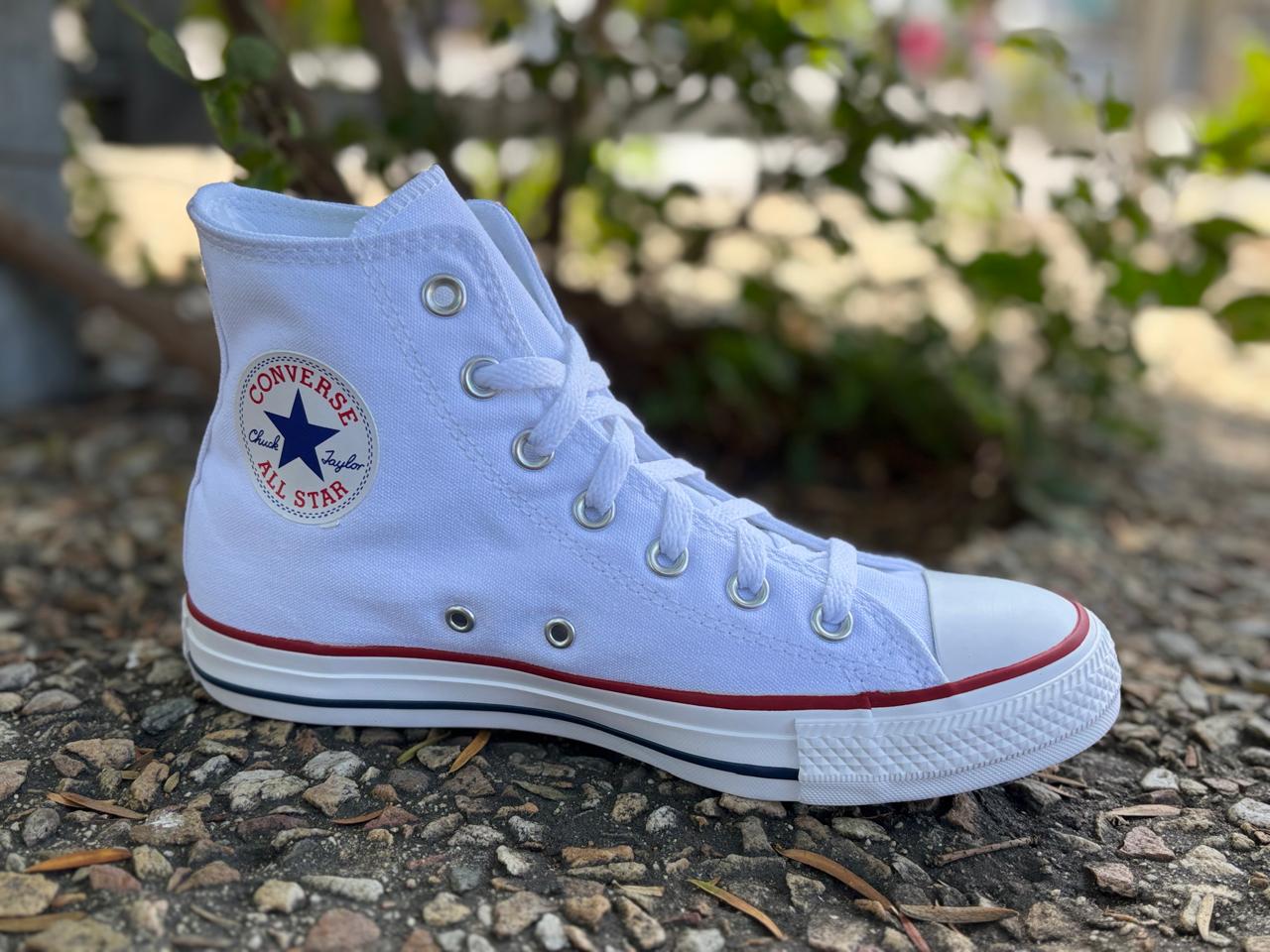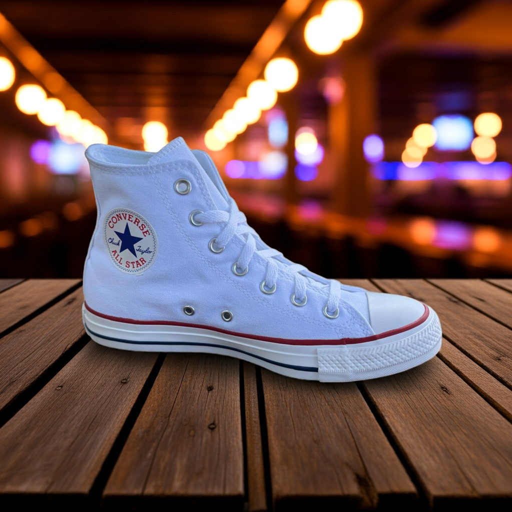 Timeless style. Iconic design. The Converse White High-Top sneaker delivers a clean, classic look that never goes out of fashion. A versatile essential for any wardrobe.